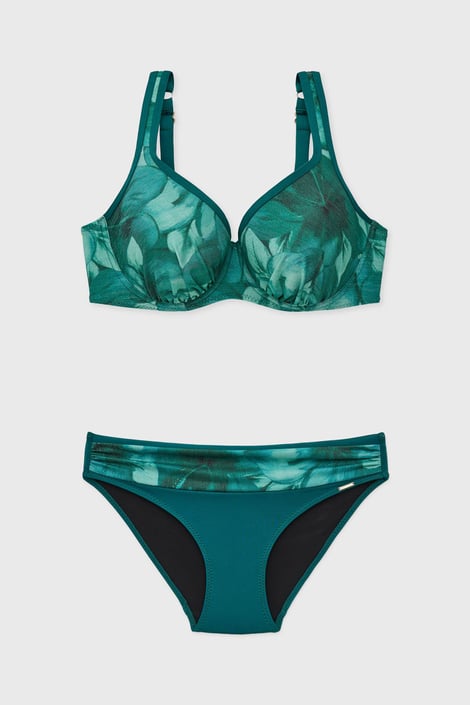 Банският костюм от две части Maia Jadegreen в красив зелен цвят ще украси гърдите ви с нежен блещукащ принт. Горнището с меко подплатени чашки с банели ще оформи красиво гърдите ви и ще им осигури опора. Презрамките са с регулация на дължината. Горнището е допълнено с класическо долнище с набрана лента на коремчето. Луксозната испанска материя с фини лурексови влакна е произведена екологично, непрозрачна е и е устойчива на UV лъчи. Банският е създаден от специалистите на Astratex.
