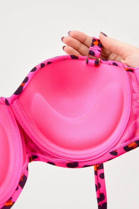 Банският костюм от две части NeoWild ще подчертае вашите форми. Горнището с подплатени Push-Up чашки не само осигурява опора на бюста, но го повдига и така извайва красиво заоблено деколте. Средата е украсена с ефектно кръстосване. Презрамките с регулация на дължината могат да се откопчаят напълно и така да се насладите на безупречен тен. Бразилското долнище оптически заобля дупето и освен това е с две лица. Елегантно черно и или животински мотив, същият като на горнището. Банският е създаден от специалистите на Astratex в неонов дизайн.