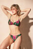 Банският костюм от две части Skylee привлича вниманието с яркия си цветен дизайн. Чашките на горнището са неподплатени, но с подвижни подплънки. Средата е украсена с елегантна метална катарама в златен цвят. Обиколката на задната страна е с нетрадиционно завързване. Горнището ще обличате по-скоро през главата, въпреки че може напълно да се развърже. Презрамките са с регулация на дължината. Горнището е допълнено с долнище с деликатна бразилска кройка. Банският е създаден от специалистите на Astratex.