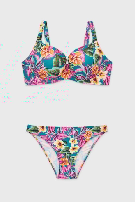 Бъдете неустоима в банския костюм от две части Velvet Hibiscus с пъстроцветен флорален дизайн. Подплатените чашки на горнището с Push-Up ефект повдигат гърдите и ги прибират една към друга, за да създадат неустоимо деколте. Презрамките са с регулация на дължината. Допълнено с класическо долнище. Създаден от специалистите на Astratex.