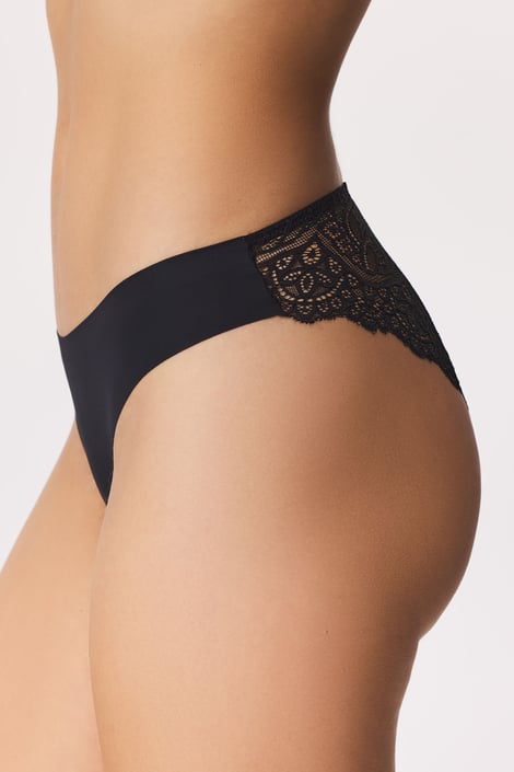 Класически бикини Adele II от органичен памук и богата орнаментална дантела. Бикините са с лазерно изрязани краища, така че не се впиват никъде. С лепени шевове.