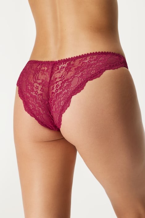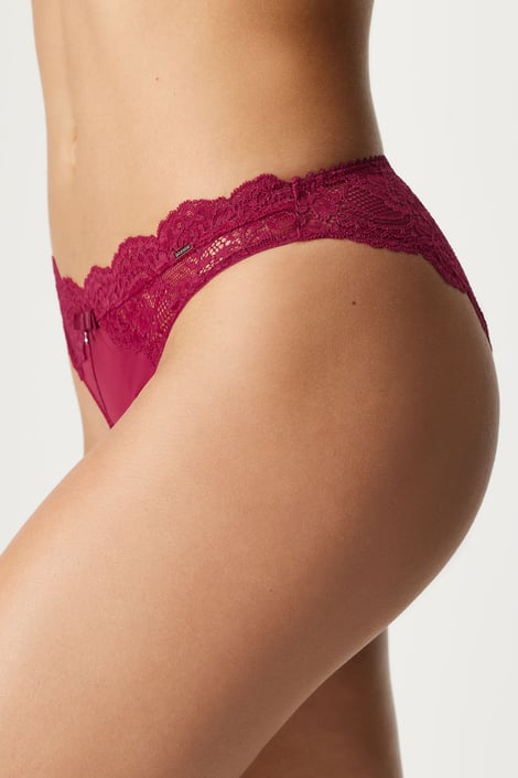 Бразилски бикини Anderson в шармантен червен цвят. Дупето е деликатно покрито с прозирна дантела.