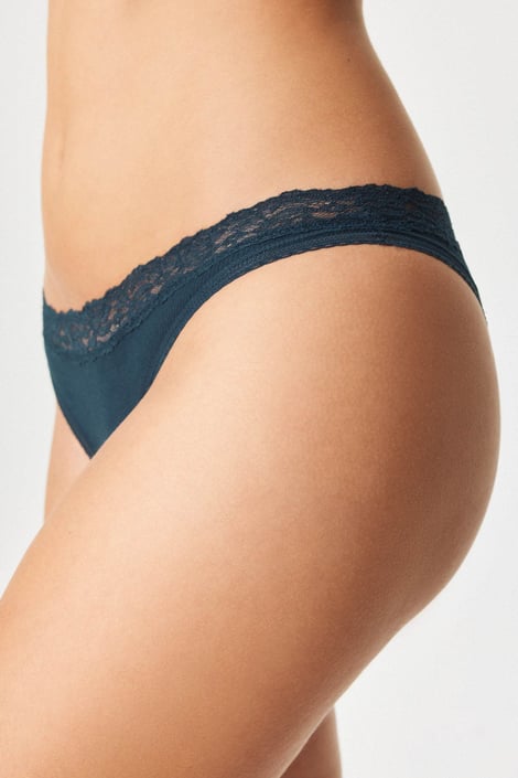 Бразилските бикини Kehlani изглеждат младежки и оптически заоблят дупето. Финото рипсено трико е украсено с дантелени краища.