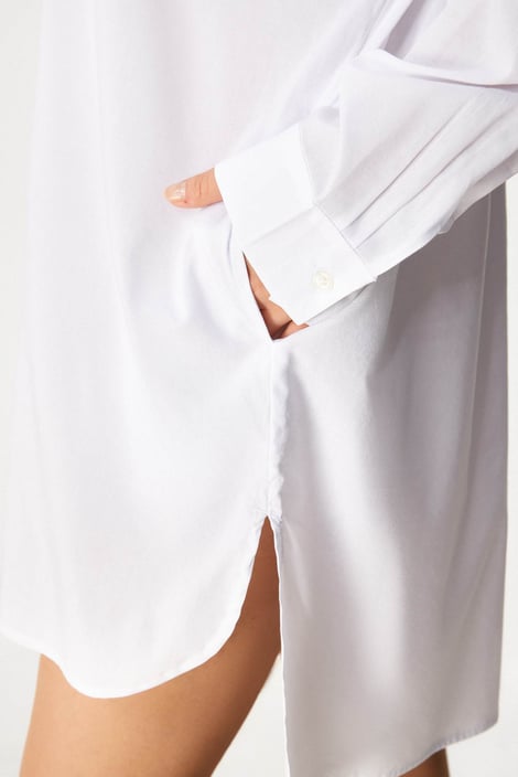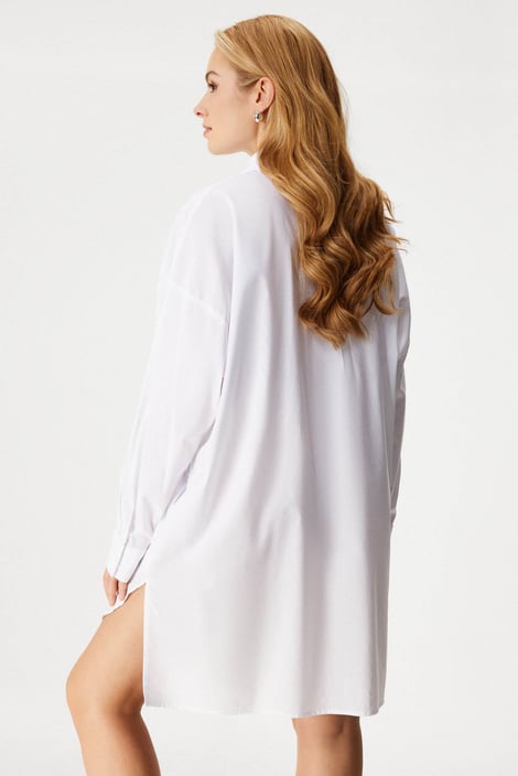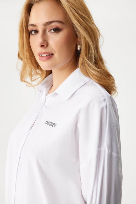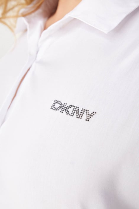 Нощница Hit the Street от премиум марката DKNY за любителките на класиката. Свободната нощница с копчета по цялата дължина е с дълги ръкави, завършващи с маншети и две различни дължини. Отпред е по-къса, отзад на дупето е по-дълга. Гърдите са украсени с блещукащото лого на марката. Свободно падащата материя е приятна за тялото.