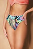 Долнище на бански костюм Betty с класическа кройка с леко по-висока талия, която извайва женската фигура. Черната основа е украсена с контрастен пъстроцветен тропически мотив.
