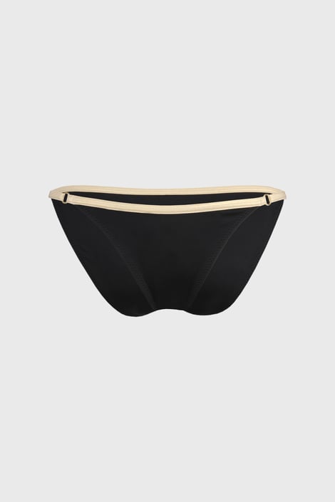 Долнище на бански костюм Bibi в елегантна комбинация от черно и златно. Отстрани на банския костюм има регулиращи се ленти, с които можете да регулирате банския костюм според нуждите си. Създаден за Astratex.