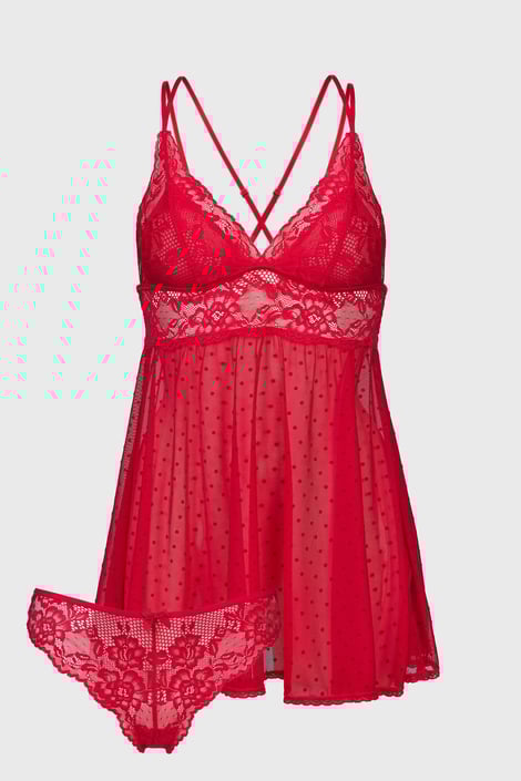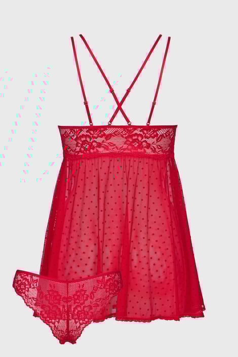 Изненадайте партньора си в съблазнителния комплект Tango от лек тюл и флорална дантела. Нощницата с извайваща кройка А-линия пада грациозно по тялото и деликатно разкрива женските форми.