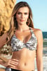 Горнище на дамски бански костюм Elena II с ретро флорален мотив. Триъгълните чашки са неподплатени и благодарение на широките еластични чашки стоят отлично и на по-голям бюст.