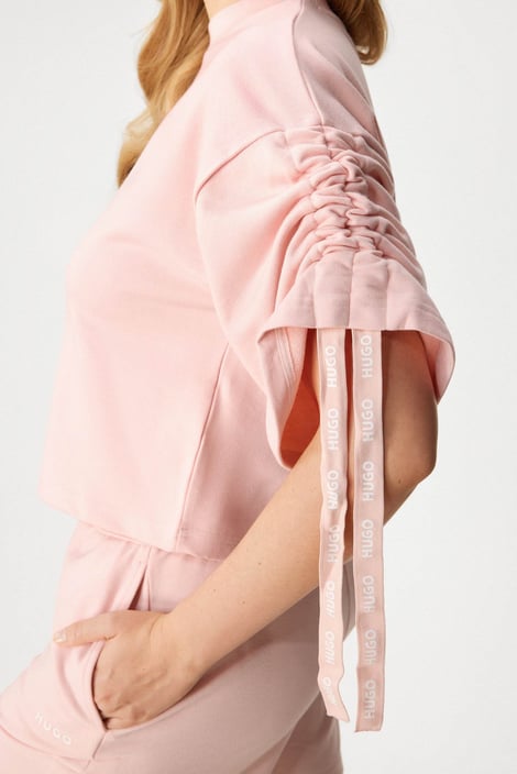 Горнището на пижама Casual от премиум марката HUGO е ушито от много приятно трико. Заедно с широката кройка ви осигурява желаното нощно удобство. Семплият дизайн е украсен с връзки за пристягане с логото на марката на късите ръкави. Малко лого има и на гърдите.