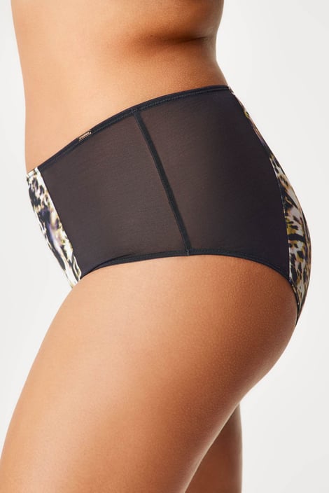 По-дълбоки бикини Zelina за комфорта на пищните женски форми. Гладкият микрофибър е нежен и мек на допир и чудесно се слива с тялото. Прозирната мрежеста материя деликатно открива ханша.