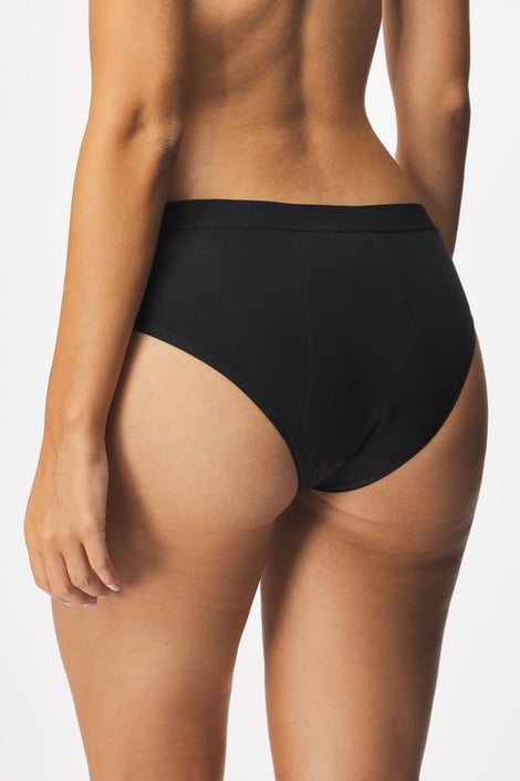 Менструалните бикини Flux Hipster от органичен памук са предназначени за дни с обилен цикъл. Специалната кройка с абсорбираща вложка не пропуска течността, предотвратява размножаването на бактерии и неприятни миризми. С удобен широк ластик на талията.Можете да използвате бикините като допълнителна защита за други помощни средства.