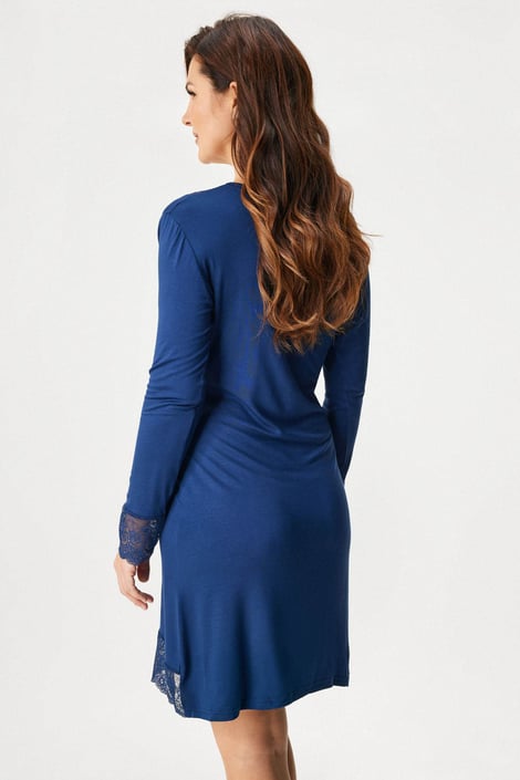Дамската нощница Signature Everly е създадена в Astratex за Вашето нощно удобство. Отличава се с мека вискоза, която е ефирна и леко пада по тялото. Деколтето, краищата на ръкавите и долният кант са обшити с фина дантела.