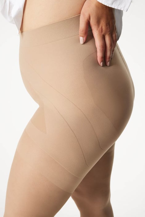 Оформящият чорапогащник Plus Size може визуално да втали бедрата, дупето и коремчето. Те ще изглади и стегне контурите под дрехите ви, така че можете да си позволите и по-прилепнала рокля или пола.