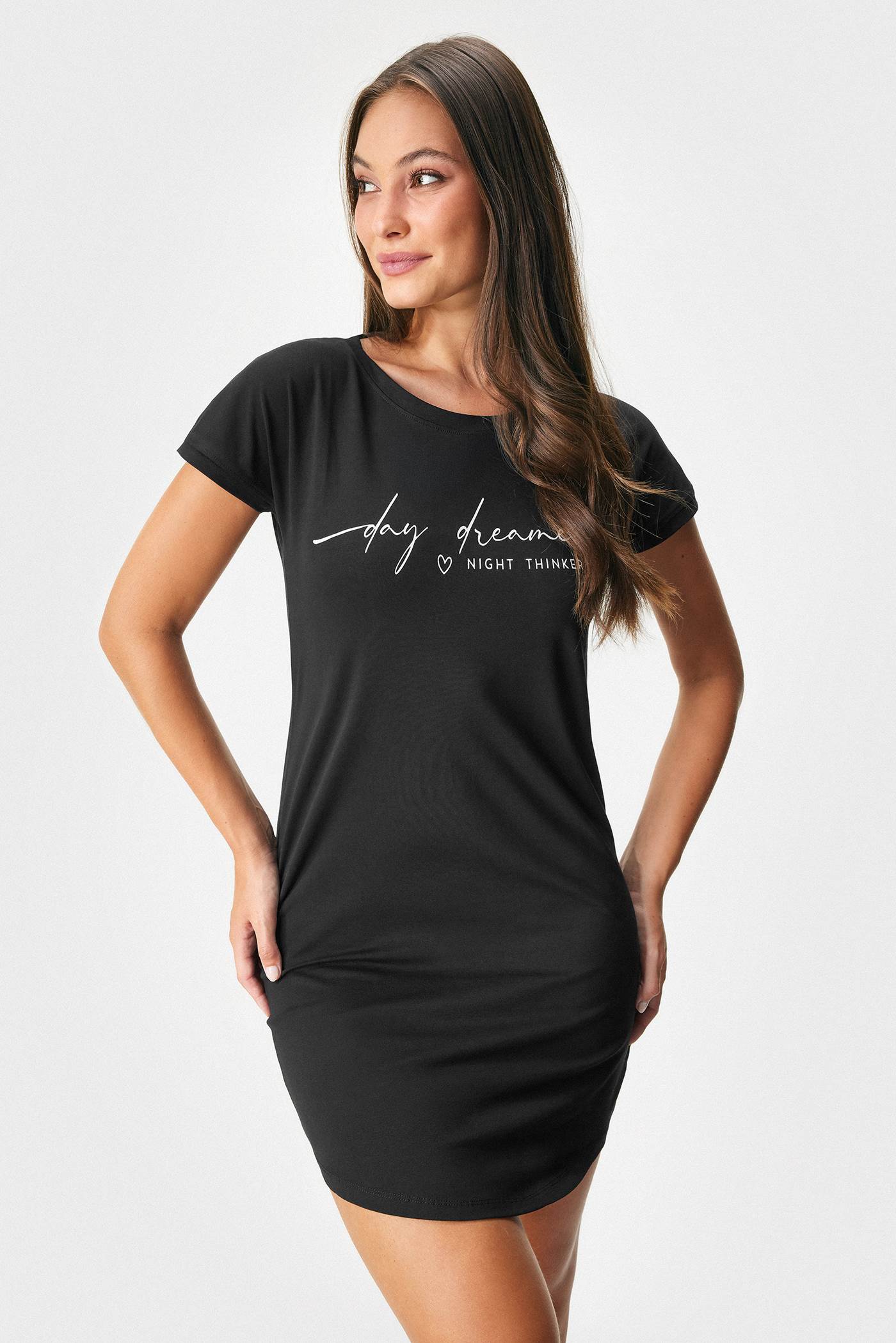 Памучната нощница Nighty от меко трико със своята семплост ще Ви осигури максимално удобство. Свободната кройка е подходяща за всякаква фигура. Долният край е заоблен, на гърдите е украсена с деликатен надпис. Създадена от специалистите на Astratex.