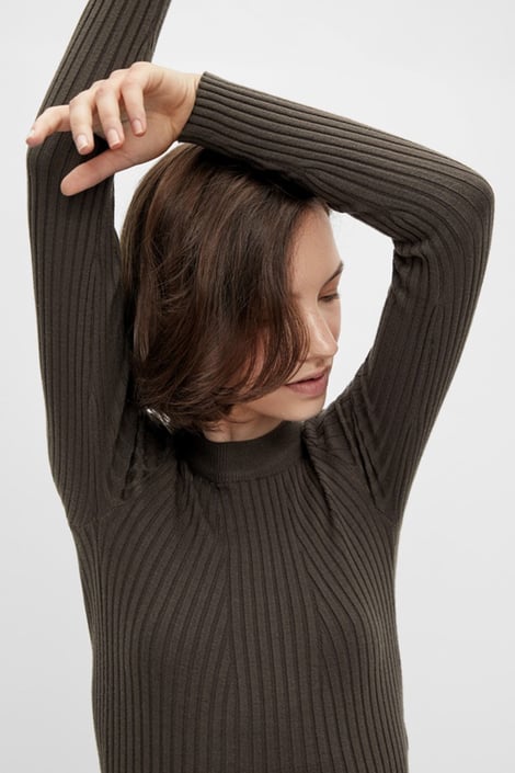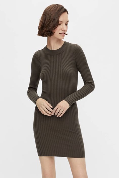 Рокля тип пуловер Pieces Ristra от меко рипсено трико с 50 % съдържание на вискоза. Комбинирайте с цветни или шарени чорапогащници и ще получите аутфит, който гарантирано ще прави впечатление.