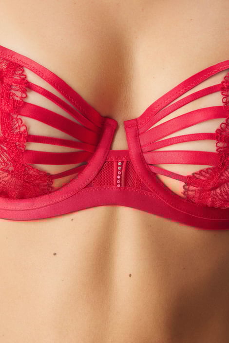 Съблазнителният сутиен Instinct ще облече бюста ви за приятните вечери с партньора. Неподплатените чашки с банели повдигат бюста, дантелата и strappy лентите частично го заоблят. Обиколката от задната страна е от фина мрежеста материя.