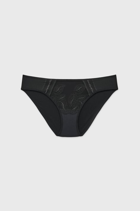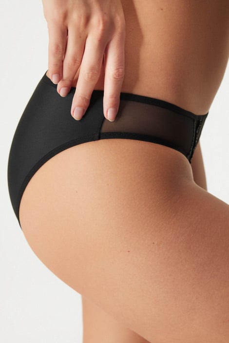 Можете да облечете съблазнителните класически бикини Instinct не само за приятните вечери с партньора. Предната страна е от фин прозирен тюл с бродерия, приятен микрофибър ще покрие дупето.