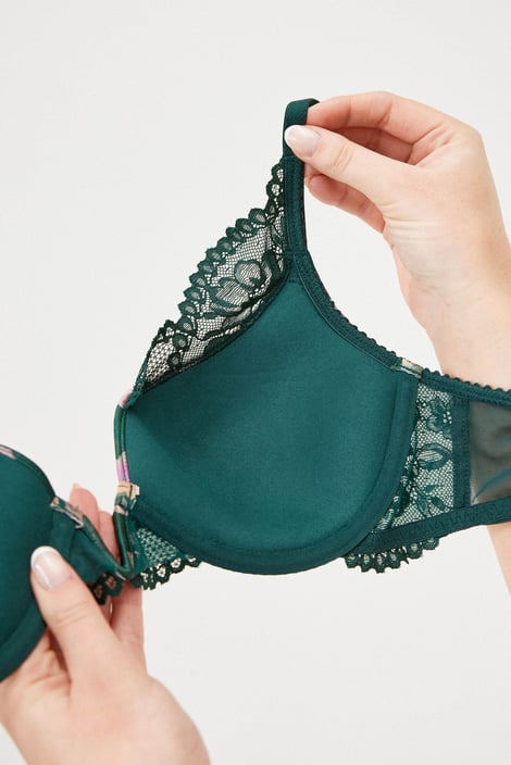 Флоралният сутиен Anahi Floral Plunge подчертава в ниската среда и по-малкия бюст. Сатенените чашки с банели придават на бюста не само опора, но и форма, линиите на деколтето са украсени с еластична дантела. Презрамките са с регулация на дължината. Обиколката на задната страна е от фин тюл.