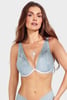 Сутиенът Coco Blue ще облече гърдите ви в ледено синя дантела с фин блясък. Подплатените чашки в ненатрапчив телесен цвят с памучна подплата осигуряват на бюста удобство, а банелите опора. Ниската среда му позволява да се открои в по-дълбоко деколте. Презрамките с регулация могат да се откопчаят и кръстосат отзад.