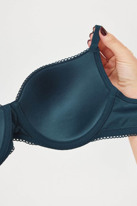 Сутиенът Kehlani е перфектният модел за Вашите по-заоблени форми. Меките чашки с банели осигуряват опора и оформят гърдите Ви. Финото рипсено трико е украсено със семпла дантела на деколтето и на обиколката.