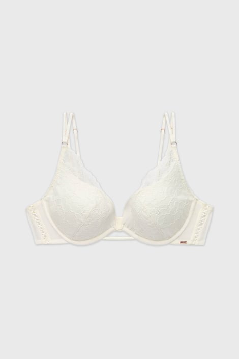 Сватбеният сутиен Lyra ще бъде Вашата луксозна опора на сватбения Ви ден. Кройката на сатенените чашки ще помогне за оформянето на бюста в деколтето, ниската среда е идеална за дълбоки деколтета. Тънките двойни презрамки и дантелата създават празнично впечатление. Обиколката е от фина мрежеста материя.